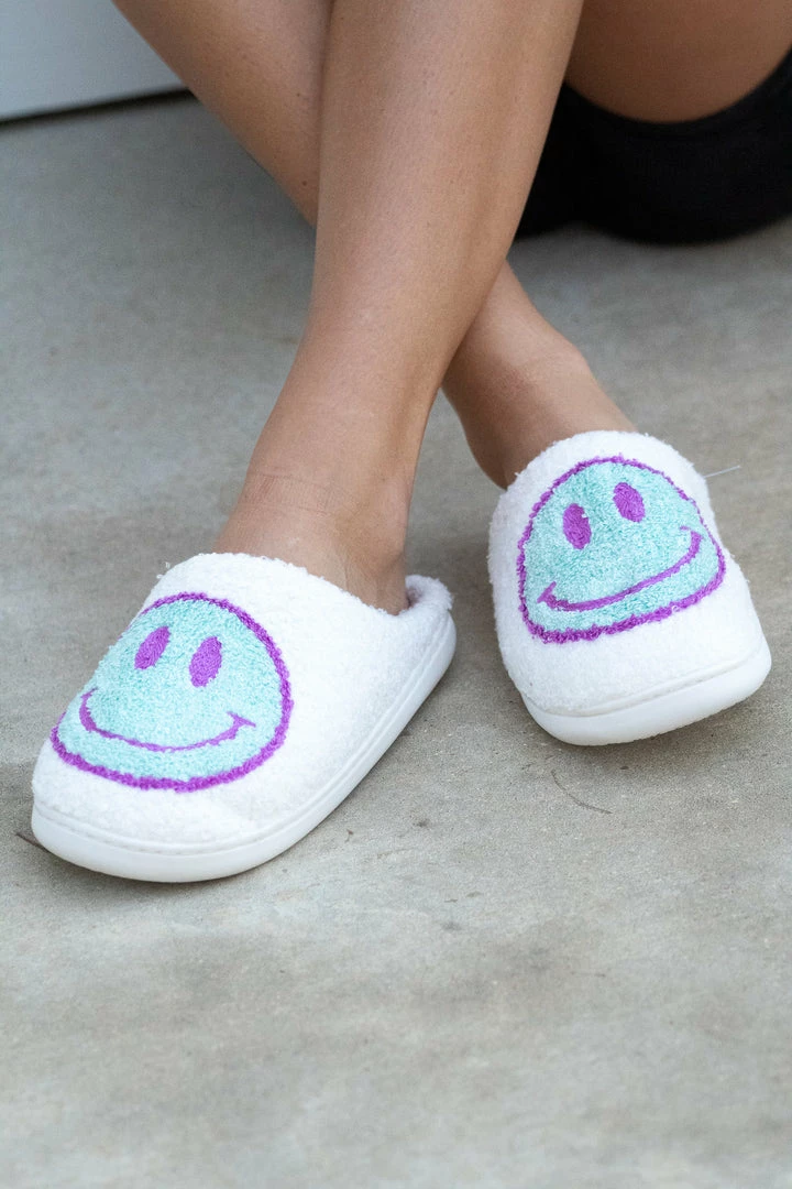 Babe Wholesale SHOES Blue/Purple Smiley Face Slippers