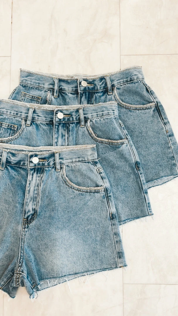 - Rhinestone frayed shortsย