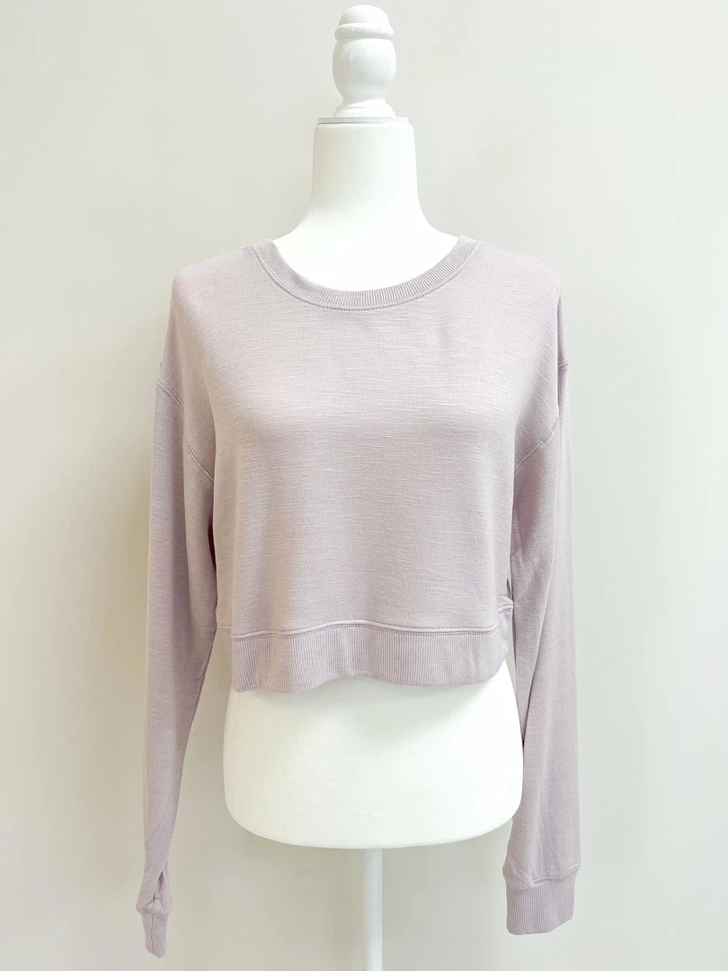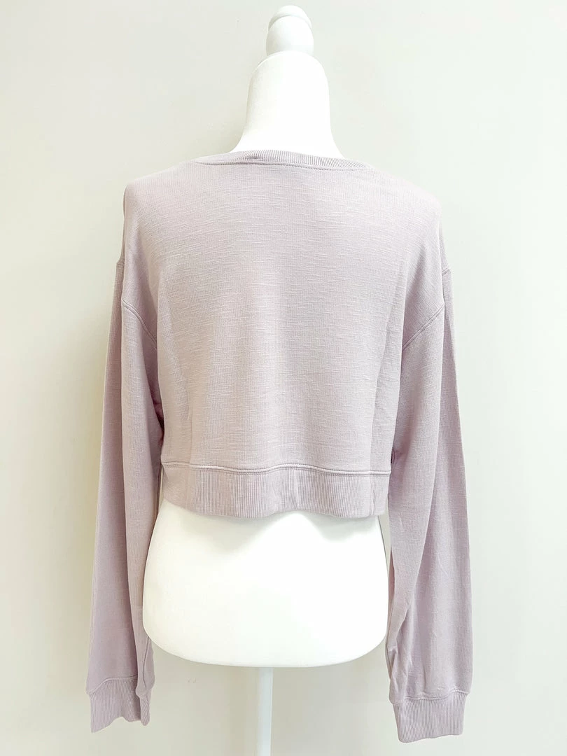 - Purple cropped knit top