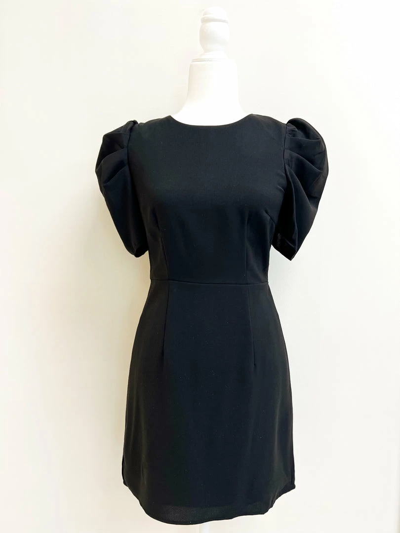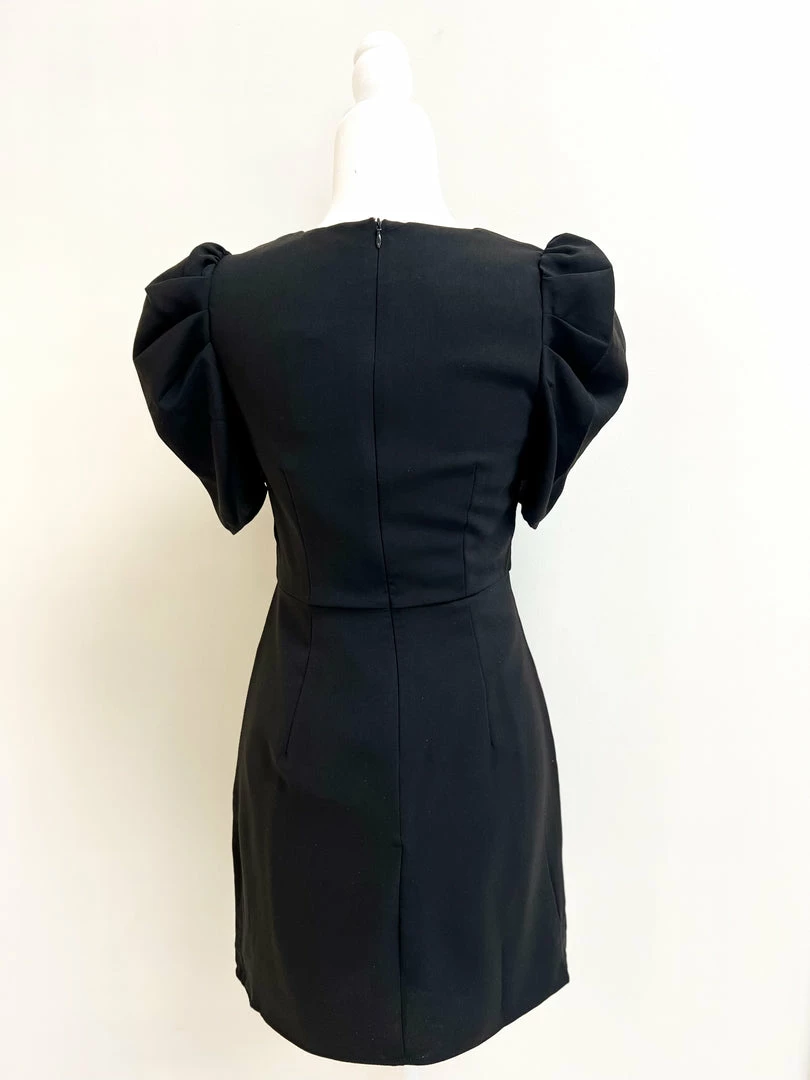 - Black dress with puff sleeve detail